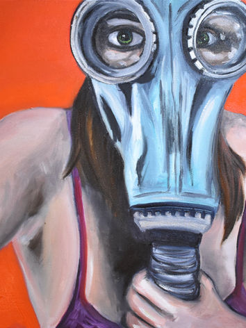 My work is inspired by my emotions and events that have affected me personally. I explore the emotional impact of toxic male masculinity on the female psyche in relationships and life. My style incorporates both surrealistic and macabre imagery. I am fascinated with the physical and metaphysical masks we wear in society. A mask's purpose is to conceal or to protect. It can conceal your identity (physical), or it can conceal your true self (metaphysical). The gas mask has become a key icon in a lot of my recent work. The gas mask is a barrier between the toxicity of societal norms and classic heterocentric tropes and the female psyche. In a lot of my work the figure is painted wearing the mask while the rest of the body is exposed.The mask represents the emotional walls built off the foundations of poor choices, desire and lust. The body is presented as open to sensual experiences, while the identity of the figure is closed off and unwilling to show the viewer who they really are. While the act of hiding behind a mask, or metaphysical mask may seem protective, overtime this mentality infects and pollutes one’s own psychological health. The character I have created is stuck between her sensuality and her ability to trust, open up, and reveal her true self. My work is meant to empower the female body and make you think about the emotional impact toxic male masculinity has on the female population.